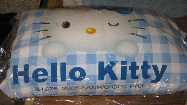 Hello Kitty枕頭巾上面有1976,2005 SANRIO CO.,LTD字樣